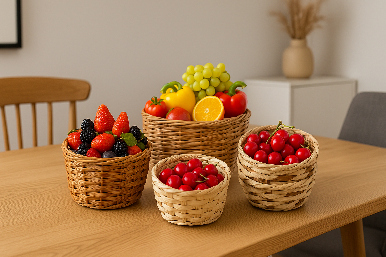 Pack of 12 bamboo baskets – round fruit and bread baskets